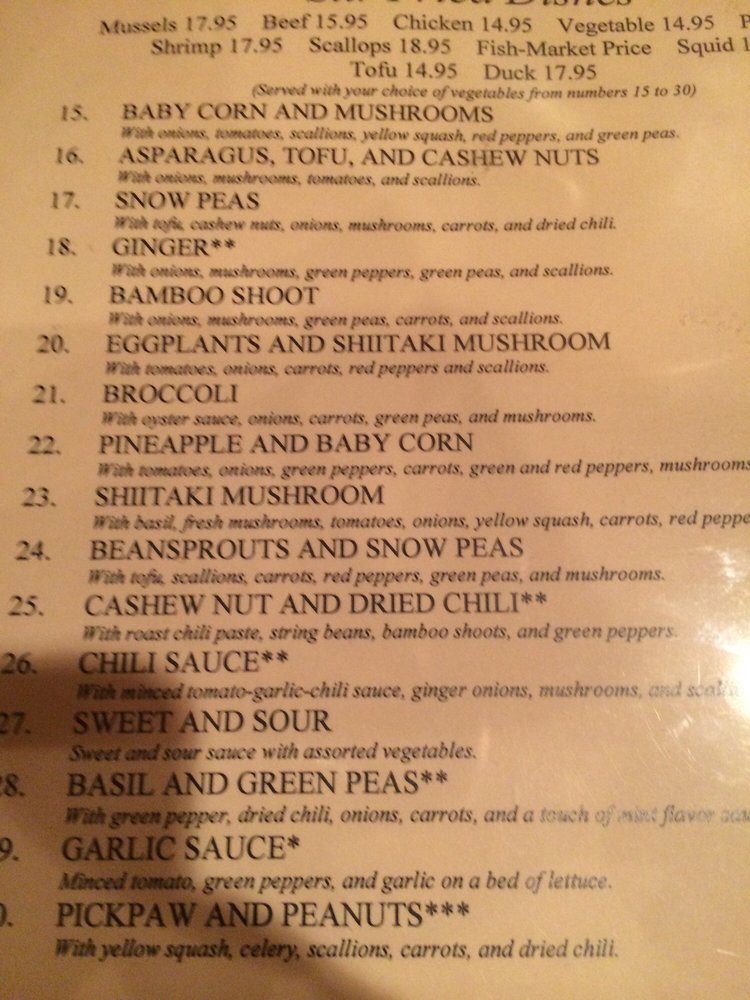 With green pepper, dried chili, onions, carrots and a touch of mint flavor sauce.